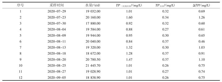 表1 湛江市某城區污水廠TP實測值